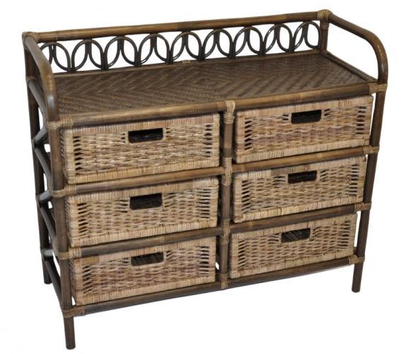 Ratanový prádelník 6 zásuvek tmavý